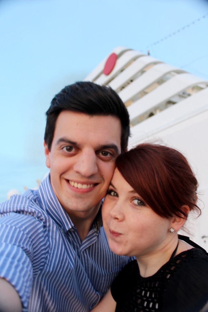 Am Abend gingen wir im “Atlantik” essen, wo uns ein edles 5-Gänge-Menü erwartete. Es war wirklich sehr lecker und im Premium-Alles-Inklusive-Paket mit dabei. Am Ende kam ich mir dann ganz komisch vor, einfach ohne zu bezahlen aufzustehen und zu gehen. Im Aufzug wurden wir übrigens von einem anderen Ehepaar angesprochen: “Euch hab ich schonmal gesehen! Im Fernseher! In dem Reisefilm.” Während der Kreuzfahrt gab es nämlich ein Filmteam, das verschiedene Stationen und Ausflüge der Fahrt filmte und daraus einen Reisefilm zusammenschnitt, den man am Ende der Reise für “nur” 69€ kaufen konnte und der während der Reise jederzeit in der Kabine oder in der Fotogalerie angesehen werden konnte. Alexander und ich waren tatsächlich beim Check-In gefilmt worden, aber nur für ein bis zwei Sekunden zu sehen. Weshalb wir dem Ehepaar trotz der kurzen Zeit aufgefallen waren? Vielleicht lag es an dem recht auffälligen Größenunterschied, der zwischen uns herrscht, vielleicht entsprachen wir aber auch aufgrund unseres Alters und Aussehens so gar nicht dem typischen Kreuzfahrtklientel, viellicht trug beides dazu bei. 😉