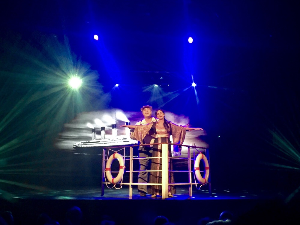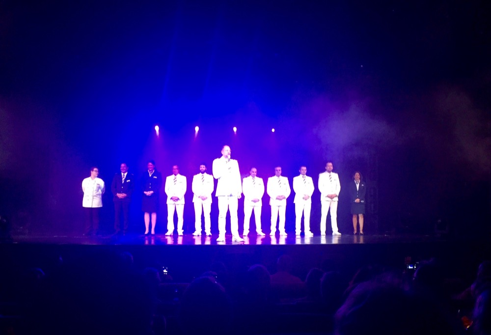 Am Abend stand der nächste Programmpunkt an: Wir besuchten einen Tanzkurs zum Cha Cha Cha beim Tanzlehrer Udo mit dem treffenden Nachnamen Wendig. Danach ging es ins Theater zur Show: Cinema Songs. Doch vorher stellten sich noch unser Kapitän, Mats Nelson, und seine leitenden Offiziere vor. Ich habe ein paar Fotos von der Show gemacht, jetzt kann überlegt werden, welcher Song bzw. dazu gehöriger Film interpretiert wurde. Noch eine kleine Anekdote: Das Publikum wurde natürlich zum Mitmachen aufgefordert und so war ein bekannter Song aus dem Film “Casablanca” gesucht. Aus der Reihe hinter uns ertönte daraufhin lautstark “Ey, dat is bestimmt Malle is nur einmal im Jahr!” Daraufhin wurde klar, dass wir wohl nicht die einzigen waren, die nicht zu den sonst so üblichen Gästen einer Kreuzfahrt gehörten. 😉