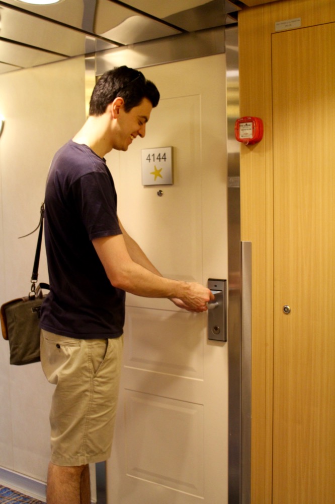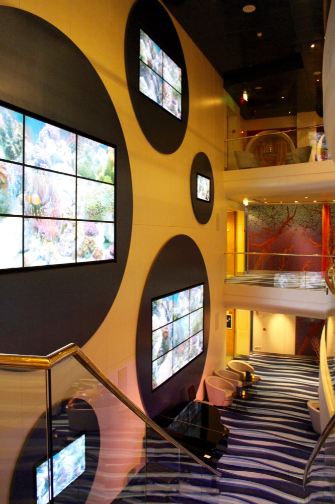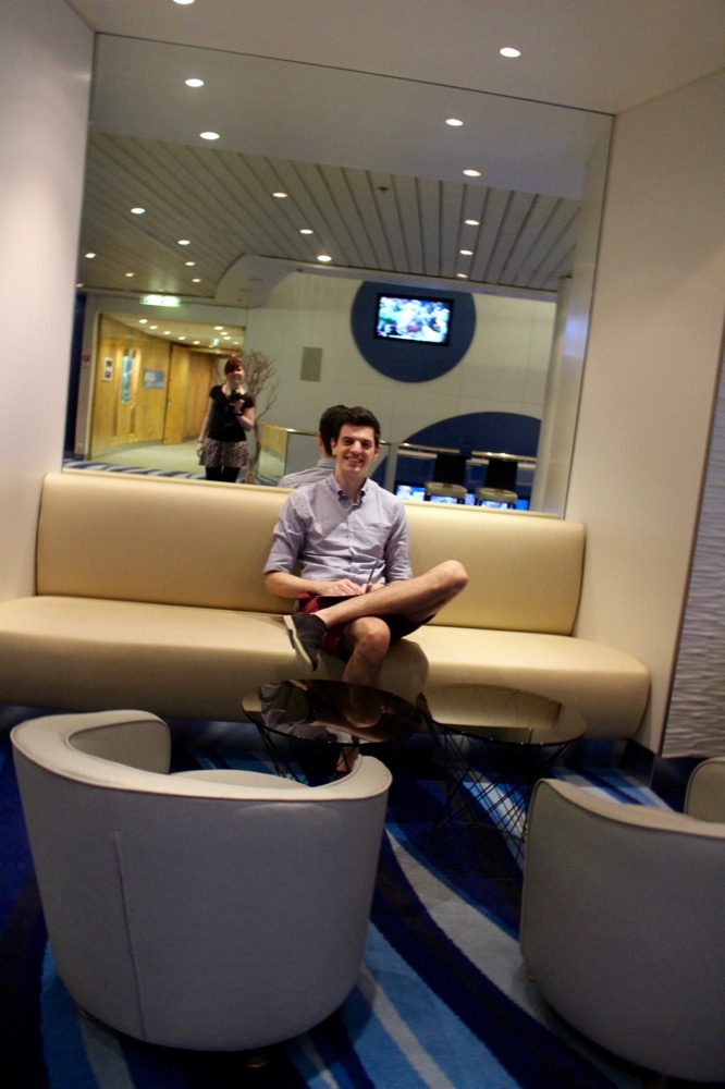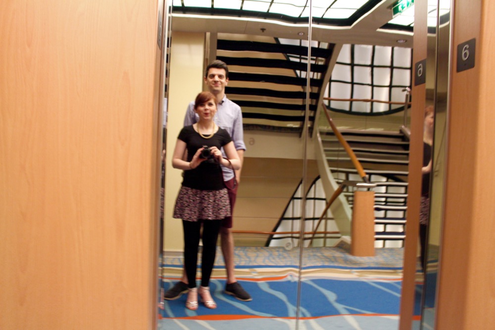 Am Abend gingen wir im “Atlantik” essen, wo uns ein edles 5-Gänge-Menü erwartete. Es war wirklich sehr lecker und im Premium-Alles-Inklusive-Paket mit dabei. Am Ende kam ich mir dann ganz komisch vor, einfach ohne zu bezahlen aufzustehen und zu gehen. Im Aufzug wurden wir übrigens von einem anderen Ehepaar angesprochen: “Euch hab ich schonmal gesehen! Im Fernseher! In dem Reisefilm.” Während der Kreuzfahrt gab es nämlich ein Filmteam, das verschiedene Stationen und Ausflüge der Fahrt filmte und daraus einen Reisefilm zusammenschnitt, den man am Ende der Reise für “nur” 69€ kaufen konnte und der während der Reise jederzeit in der Kabine oder in der Fotogalerie angesehen werden konnte. Alexander und ich waren tatsächlich beim Check-In gefilmt worden, aber nur für ein bis zwei Sekunden zu sehen. Weshalb wir dem Ehepaar trotz der kurzen Zeit aufgefallen waren? Vielleicht lag es an dem recht auffälligen Größenunterschied, der zwischen uns herrscht, vielleicht entsprachen wir aber auch aufgrund unseres Alters und Aussehens so gar nicht dem typischen Kreuzfahrtklientel, viellicht trug beides dazu bei. 😉
