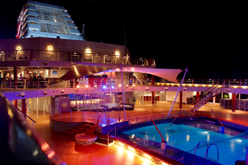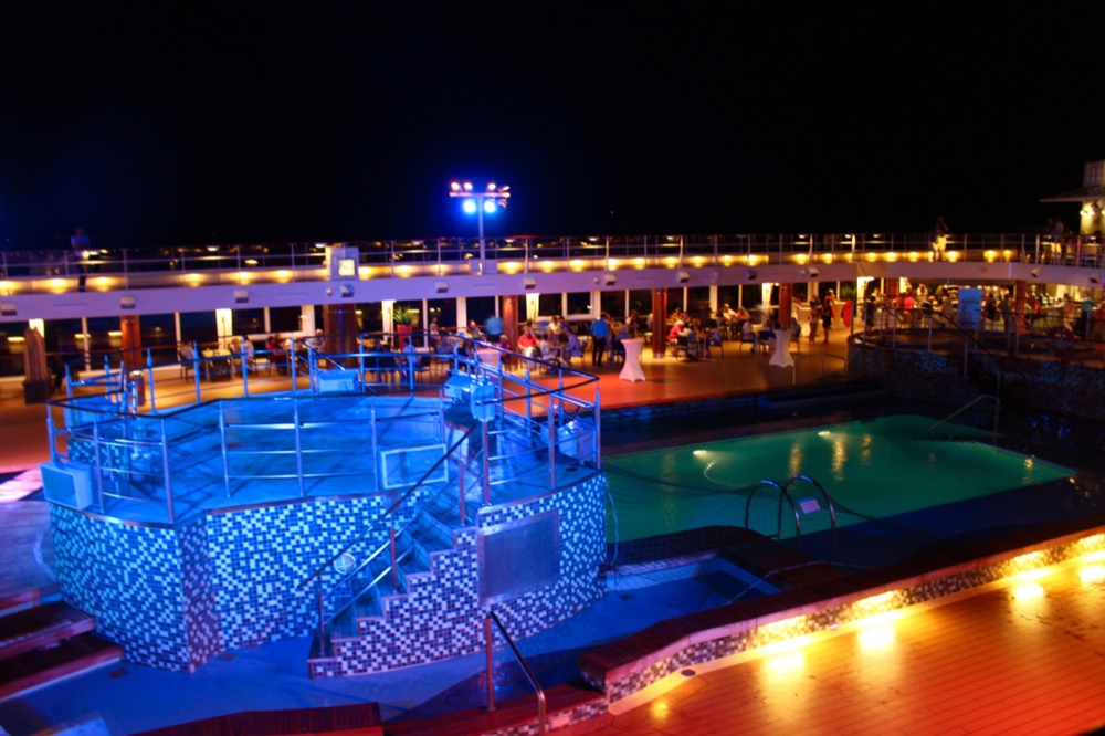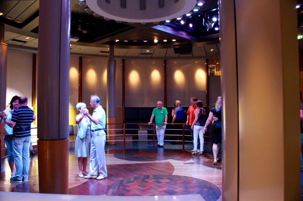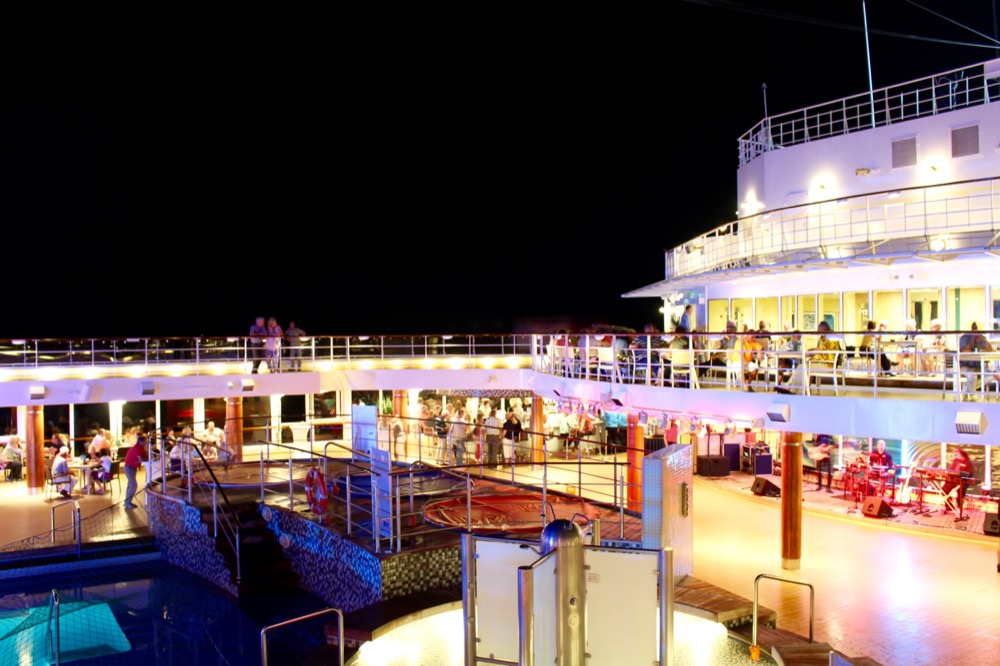 Nach der Show machten wir noch einen Abstecher in die von der Kreuzfahrtdirektorin gepriesene Abtanzbar. Doch hier erwarteten uns nur eine Handvoll Discofox tanzende Leute älteren Semesters und Helene Fischer, weshalb wir schnell das Weite suchten und uns einen Drink am Polodeck gönnten.