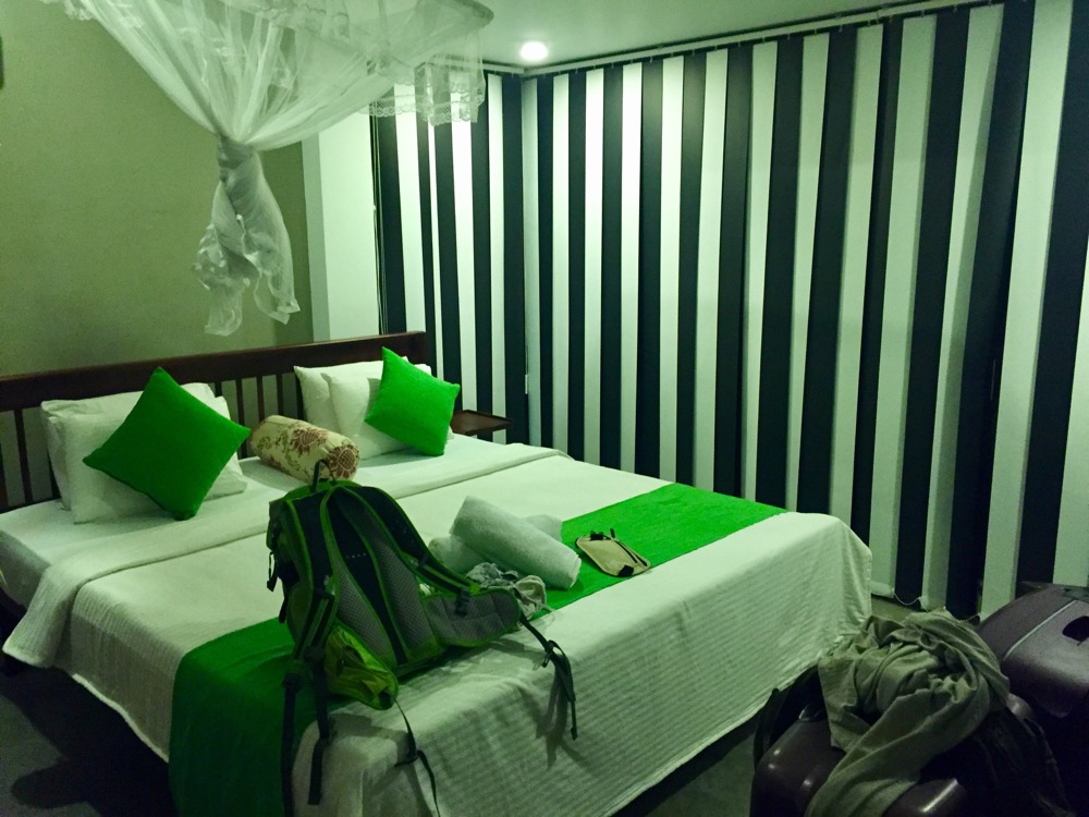 Nachdem wir nach ca. 16 Stunden Flügen (inklusive 6 Stunden Aufenthalt am Flughafen Dubai, während dessen wir versuchten, den Schlaf nachzuholen, den wir Dank Entertainments-Programms des Fluges verloren hatten) abends in Colombo gelandet waren, machten wir uns auf die Suche nach unserem “Fahrer”, den Menik, die Besitzerin des Guesthouse in dem wir für die nächsten 8 Wochen unterkommen wollen, beauftragt hatte, uns abzuholen. In der Masse der Einheimischen, die entweder “Money Change here, Money, Money!” oder “Taxi, Taxi!” riefen und dabei wild gestikulierend auf uns zu kamen, entdeckten wir schließlich ein Schild mit unseren Namen: “Lena and Ann”. Der zweite Teil meines Vornamens wird hier oft unterschlagen, er ist wohl einfach zu kompliziert. 😉 Nun begann die abenteuerliche Fahrt durch den einheimischen Verkehr. Dieser erinnert stark an den balinesischen: Regeln scheint es keine zu geben und es gilt sowohl “Wer hupt, gewinnt” als auch “Wer zuerst kommt, mahlt zuerst”. Zwischen Autos und Bussen schlängelten sich zahlreiche Motorroller und Tuk-Tuks. Untermalt wurde die rasante Fahrt durch ein (etwas gewöhnungsbedürftiges) einheimisches Konzert, welches auf einem Bildschirm im Auto lief. Die rhythmischen Klänge und das Schaukeln des Autos trugen ihr Übriges zum bestehenden Schlafmangel bei und so versanken wir für den Rest der Fahrt (welche insgesamt “schlappe” 2,5 Stunden dauerte) in süße Träume.