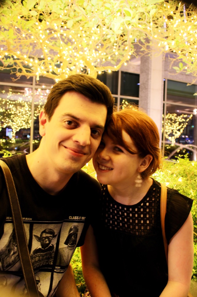 Nachdem wir zwischenzeitlich wieder auf die “Mein Schiff 1” zurückgekehrt waren, um dort unsere Kabine zu beziehen, machten wir uns auf den Weg zu einem Abendspaziergang in Singapur. Jetzt waren die Temperaturen auch besser zu ertragen als am Nachmittag (da waren es ca. 38°C). Außerdem wollten wir uns eine um 20:45 Uhr beginnende Lasershow (Wonder Full – Light & Water Show) anschauen, nur wussten wir nicht, wo genau diese stattfinden sollte. Alexander meinte, ein Tourguide hätte gesagt, wir müssten zum Clarke Quay. Wir waren spät dran (mittlerweile war es bereits 20:30 Uhr) also stiegen wir schnell in ein vor dem Schiff wartendes Taxi. Sollte hier ja so günstig sein. Der Taxifahrer wollte dann aber auf einmal aber 35 Singapur-Dollar für eine 10-minütige Fahrt haben, und meinte noch, es sei ein Sonderpreis, ansonsten würde es nämlich 60 Dollar kosten. Da wir beide ja so gut handeln können (nicht), ging das eine Weile hin und her und am Ende bezahlten wir schließlich “nur” 25 Dollar.