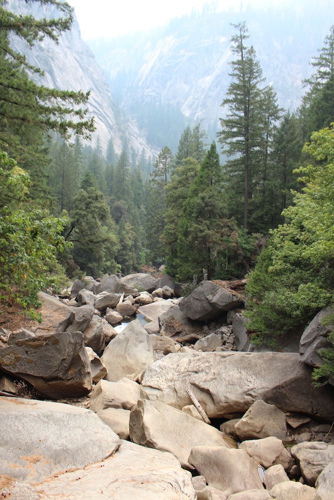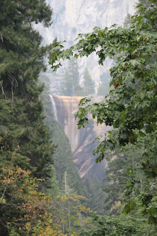 Mit seinen Bäumen, Seen, Wasserfällen und Felsen stellte sich dieser National Park als einer der schönsten dar und wir beschlossen, ein bisschen zu wandern. Das Wetter verschlechterte sich jedoch zusehends und als wir dann bei der Brücke, von der aus man die Vernal Falls gut sehen konnte, angelangt waren, begann es zu donnern und zu regnen, weshalb wir beschlossen, umzukehren. Dieser Entschluss wurde von der Tatsache, dass wir bereits nach 1,4 Kilometern bergauf Wanderns (fast) alle schon außer Puste waren und nicht mehr weiter konnten, bestärkt.